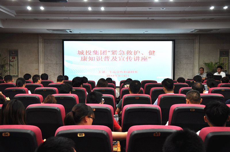 为加强安全生产教育和普及紧急救护知识、减少事故及经济损失。9月6日下午 ,南昌城投集团在五楼百人会议室开展群众性“紧急救护、健康知识”普及讲座活动。讲座由江西省健康教育中心副科长王岚授课。由集团公司总经理助理、职工董事、综合部经理冯敏主持。集团公司各部(室)、各子公司共100余名员工参加。